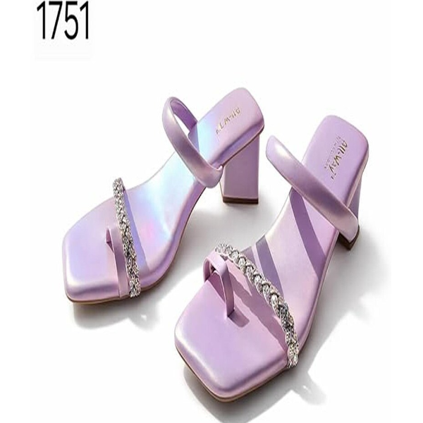 Elevate your style with these iridescent lavender block heel sandals, designed to bring modern elegance and radiant sparkle to any occasion. Featuring a chic square toe silhouette and a luminous pastel lavender finish, these heels reflect subtle iridescent tones that shimmer beautifully under light, making them perfect for both daytime events and evening celebrations. The standout detail is the crystal-embellished chain strap that gracefully crosses the upper, adding refined glamour and eye-catching brilliance. A supportive toe loop enhances stability while contributing to the contemporary, fashion-forward design. The smooth slip-on mule style ensures effortless wear, while the structured block heel provides balance and comfort for extended occasions. Crafted with a cushioned insole, these sandals are made for style without sacrificing comfort. The mid-height block heel offers confident lift and steady support, making them ideal for weddings, receptions, cocktail parties, formal dinners, proms, and special celebrations. The soft lavender hue pairs beautifully with flowing gowns, cocktail dresses, tailored sets, or even elevated casual outfits. Whether you're attending a bridal event, celebrating a milestone, or simply adding a statement piece to your wardrobe, these sparkling block heel sandals deliver sophistication with a modern edge. Their combination of shimmer, structure, and comfort makes them a versatile and elegant addition to any shoe collection. Step confidently into your next event with heels that capture light, attention, and timeless feminine charm.